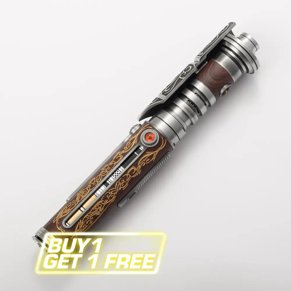 Discover the majestic Old Republic Saber, inspired by the legendary Jedi Knights of the Old Republic and the revered Orgus Din. Expertly crafted, this saber combines elegant details and advanced functionality, perfect for collectors and duel enthusiasts alike. The hilt features a unique wood-effect finish with intricate golden accents, paying homage to the classic style of the era. Equipped with Proffie 2.2 technology, it offers superior audio with 32 customizable sound fonts, delivering an immersive experience. Vivid brightness and lifelike sound effects complete this exceptional design. Embrace Jedi history with the Old Republic Saber today!