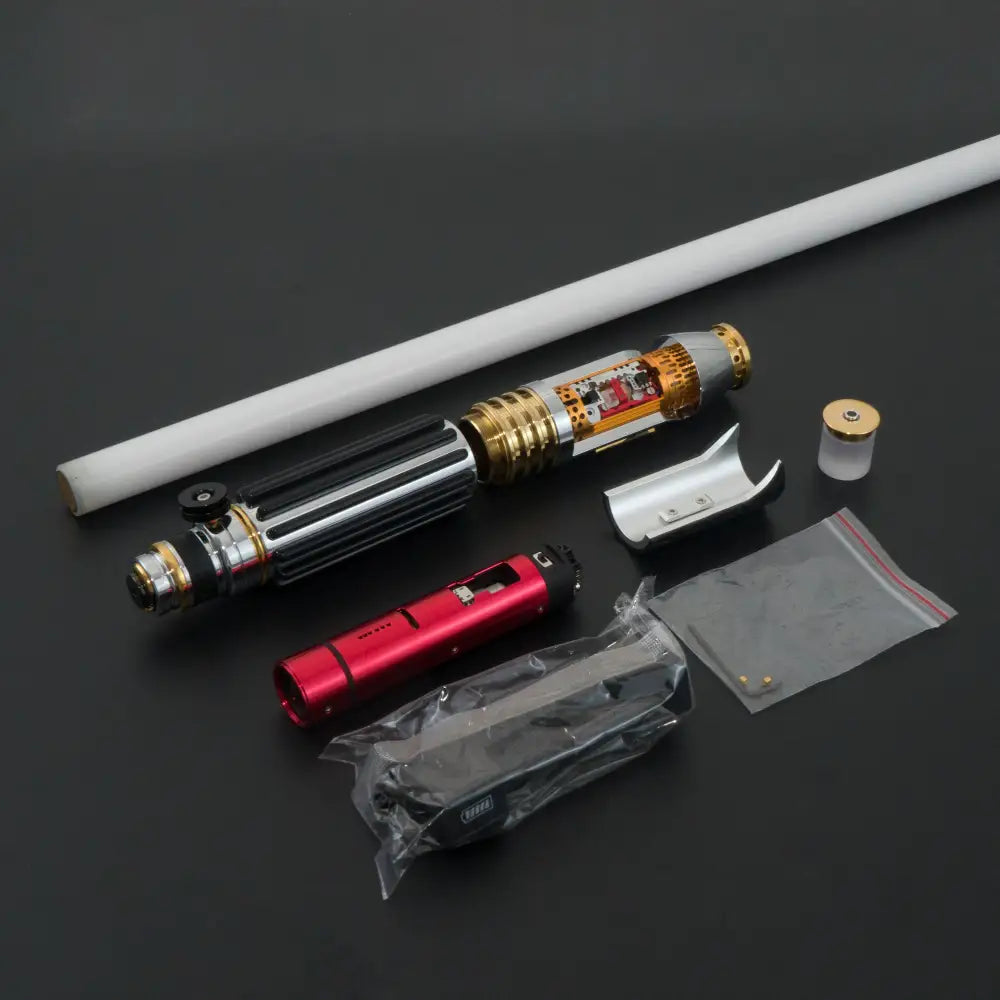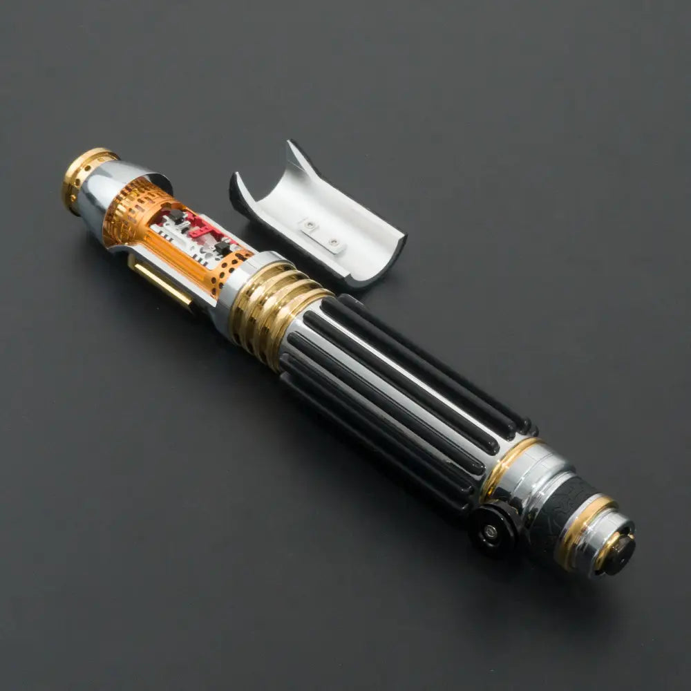 The ultimate saber. Removable blade. Over 250 LEDs in the blade itself. Allowing for the most realistic saber experience ever. Infinite colors (All lightsaber colors included). Gesture controllable. (Turning on/off). Smooth swing 5 Different ignitions + the ability to customize ignitions. 21 Different sound fonts + the ability to customize sound fonts. Sound effects: Ignition, Motion, Deflecting, Clash, Blaster BlockFlash on clash.