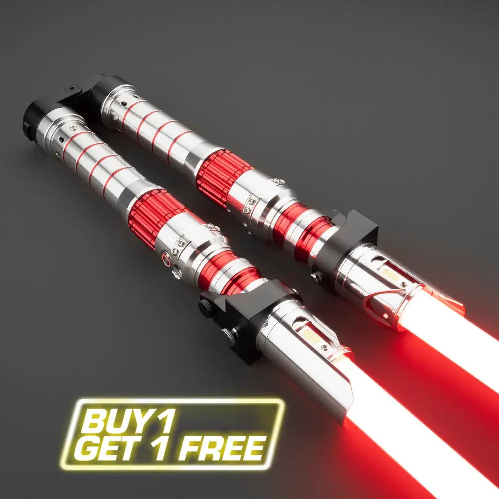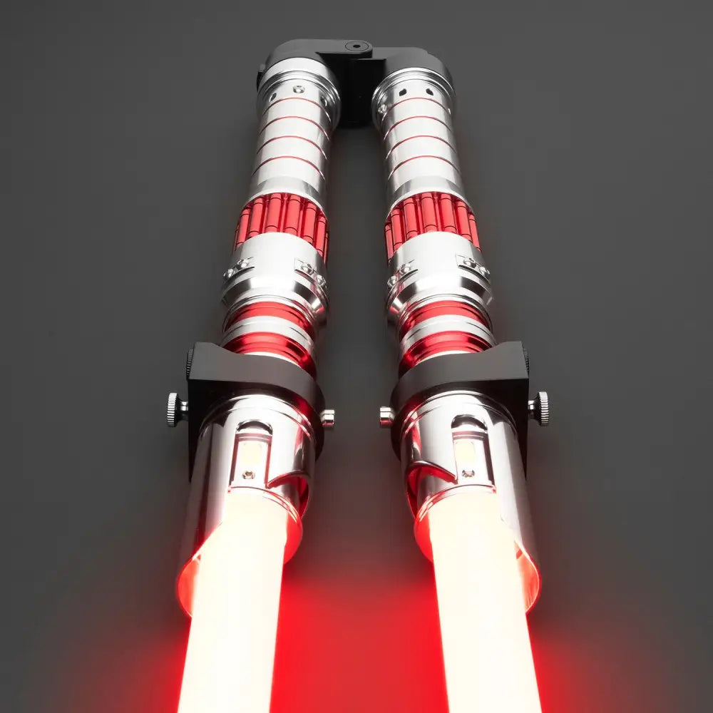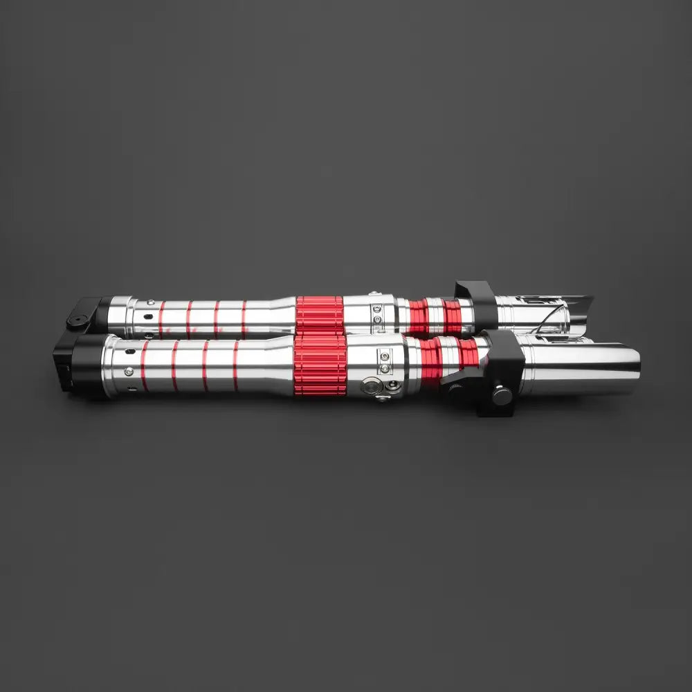 Envision a realm that blurs the line between dreams and reality. From the wreckage of battles long past emerges the wielder of this extraordinary saber, a harbinger of the dark side. Adorned with dual-bladed crimson brilliance, this saber offers a mesmerizing twist - its design allows it to fold at the midpoint, shifting seamlessly between a classic double-bladed form and two parallel blades, a display of sheer intimidation.