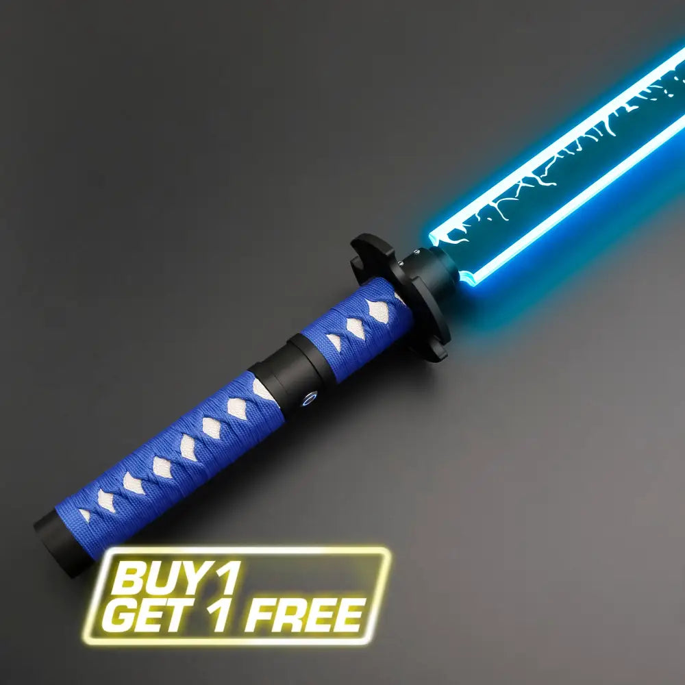 Discover these Sabers inspired by traditional Japanese katanas, a unique fusion of classic elegance and futuristic technology. Available with a standard blade for a realistic look and a flat blade for a minimalist, innovative design. The handles are wrapped in premium fabric for comfort and style. Perfect for collectors and Jedi arts enthusiasts.