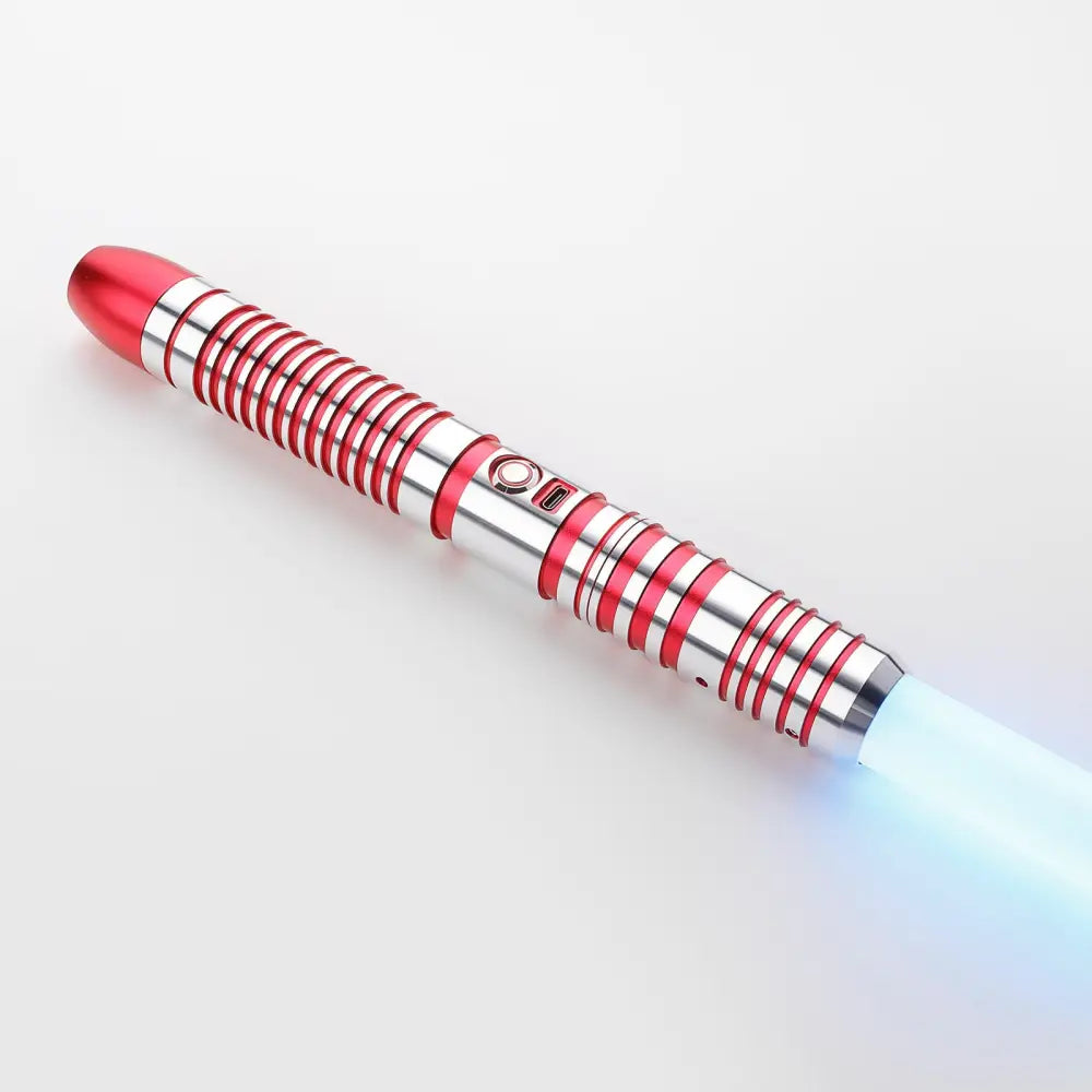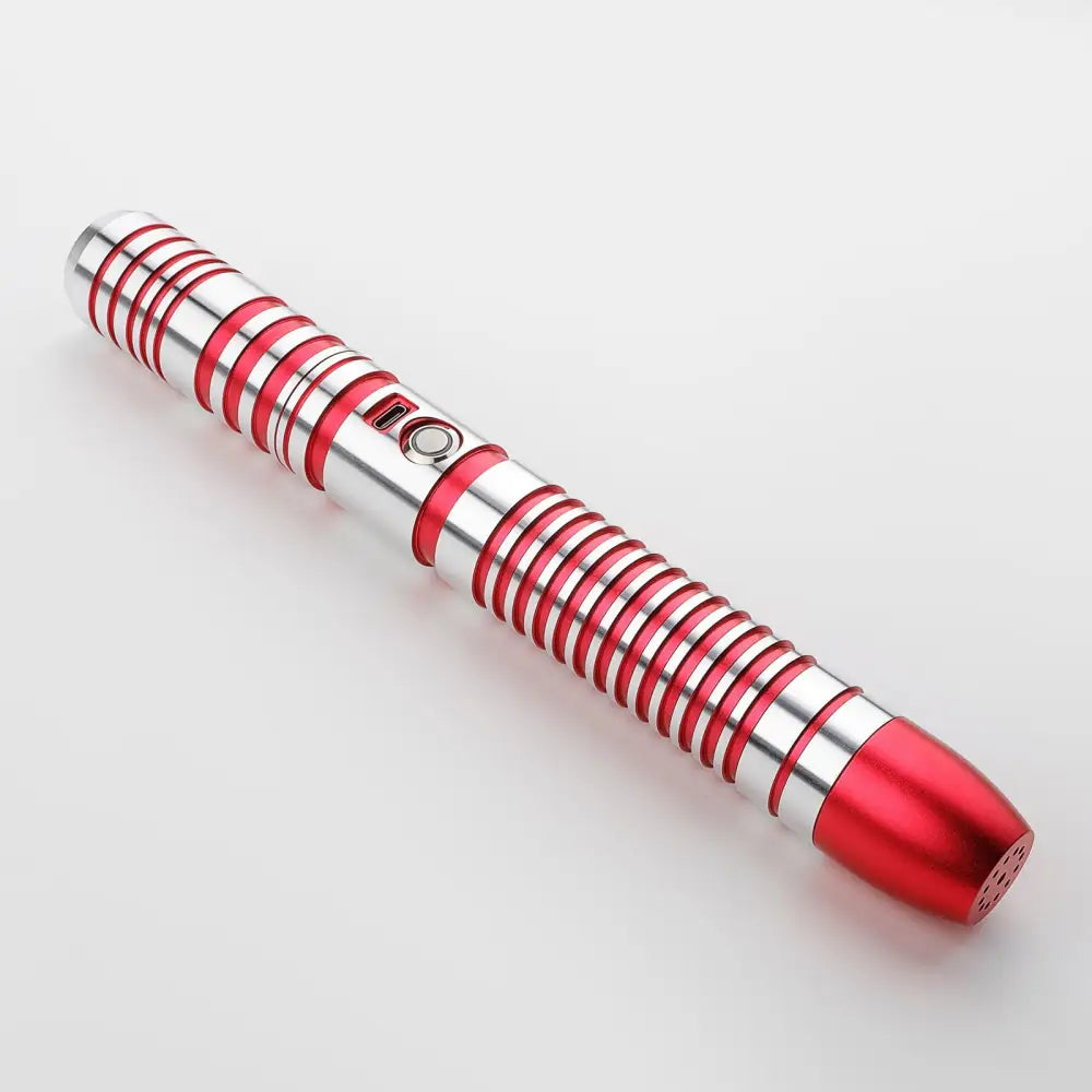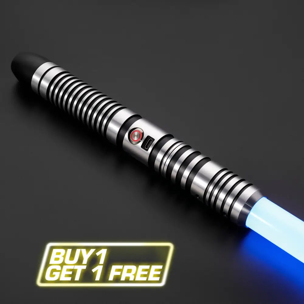 The ultimate saber. Removable blade. Over 250 LEDs in the blade itself. Allowing for the most realistic saber experience ever. Infinite colors (All lightsaber colors included). Gesture controllable. (Turning on/off). Smooth swing 5 Different ignitions + the ability to customize ignitions. 21 Different sound fonts + the ability to customize sound fonts. Sound effects: Ignition, Motion, Deflecting, Clash, Blaster BlockFlash on clash.