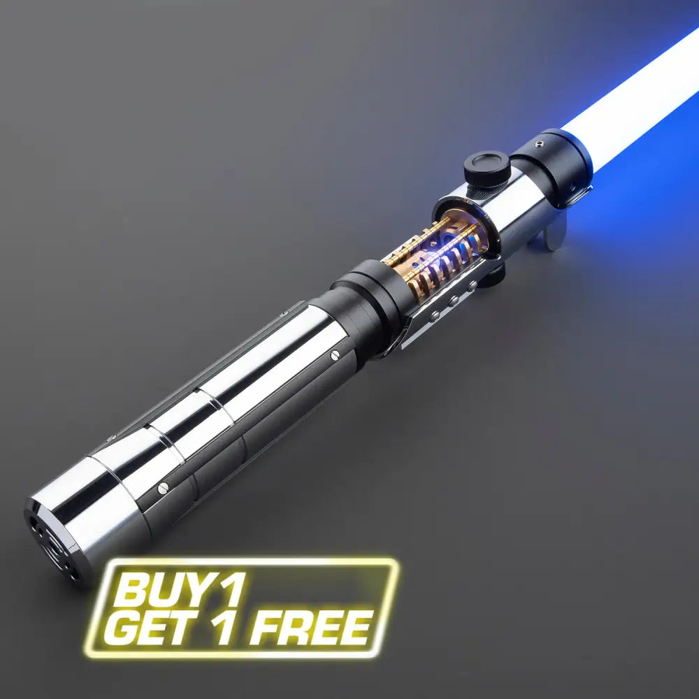 The ultimate saber. Removable blade. Over 250 LEDs in the blade itself. Allowing for the most realistic saber experience ever. Infinite colors (All lightsaber colors included). Gesture controllable. (Turning on/off). Smooth swing 5 Different ignitions + the ability to customize ignitions. 21 Different sound fonts + the ability to customize sound fonts. Sound effects: Ignition, Motion, Deflecting, Clash, Blaster BlockFlash on clash.