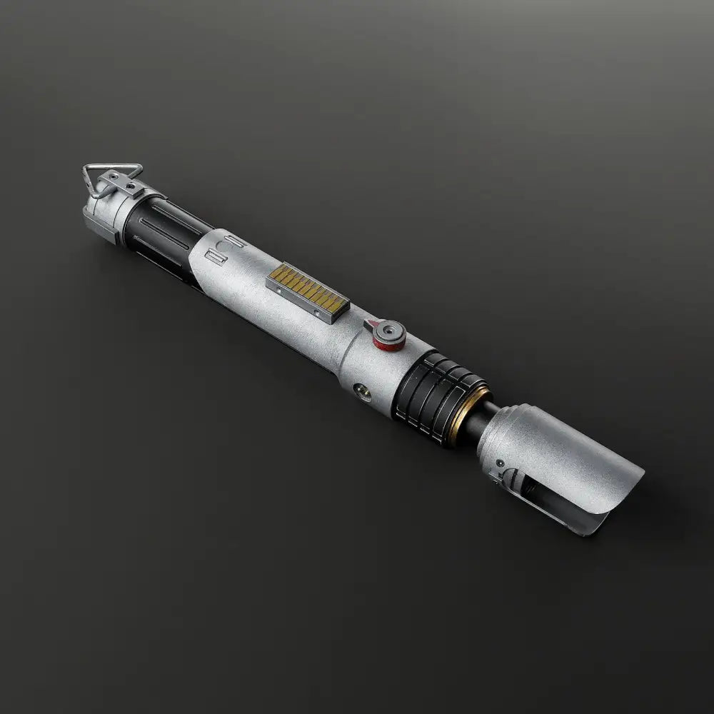 The weathered version of Sabine W.'s lightsaber is much more than a weapon: it is an icon of determination and rebirth. With its battle-worn appearance, it tells the story of a heroine who faced challenges and rose again stronger. Forged after her return as a Jedi under the leadership of A.T., this sword represents the fusion of Mandalorian heritage and Jedi power, with the Phoenix Starbird symbolising hope and courage.