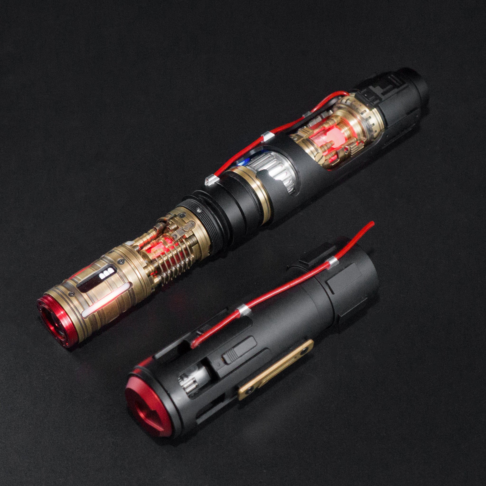 The ultimate saber. Removable blade. Over 250 LEDs in the blade itself. Allowing for the most realistic saber experience ever. Infinite colors (All lightsaber colors included). Gesture controllable. (Turning on/off). Smooth swing 5 Different ignitions + the ability to customize ignitions. 21 Different sound fonts + the ability to customize sound fonts. Sound effects: Ignition, Motion, Deflecting, Clash, Blaster BlockFlash on clash.