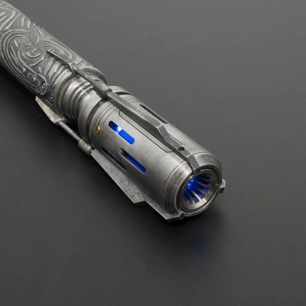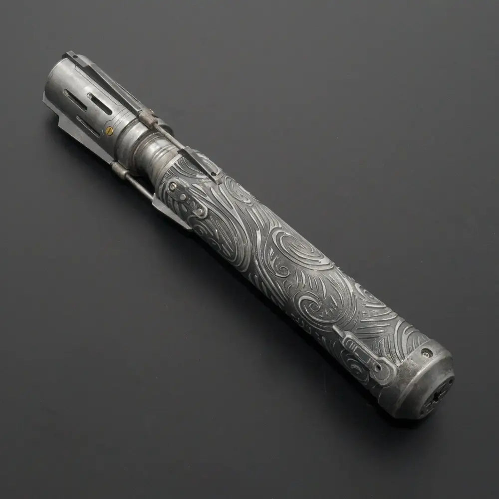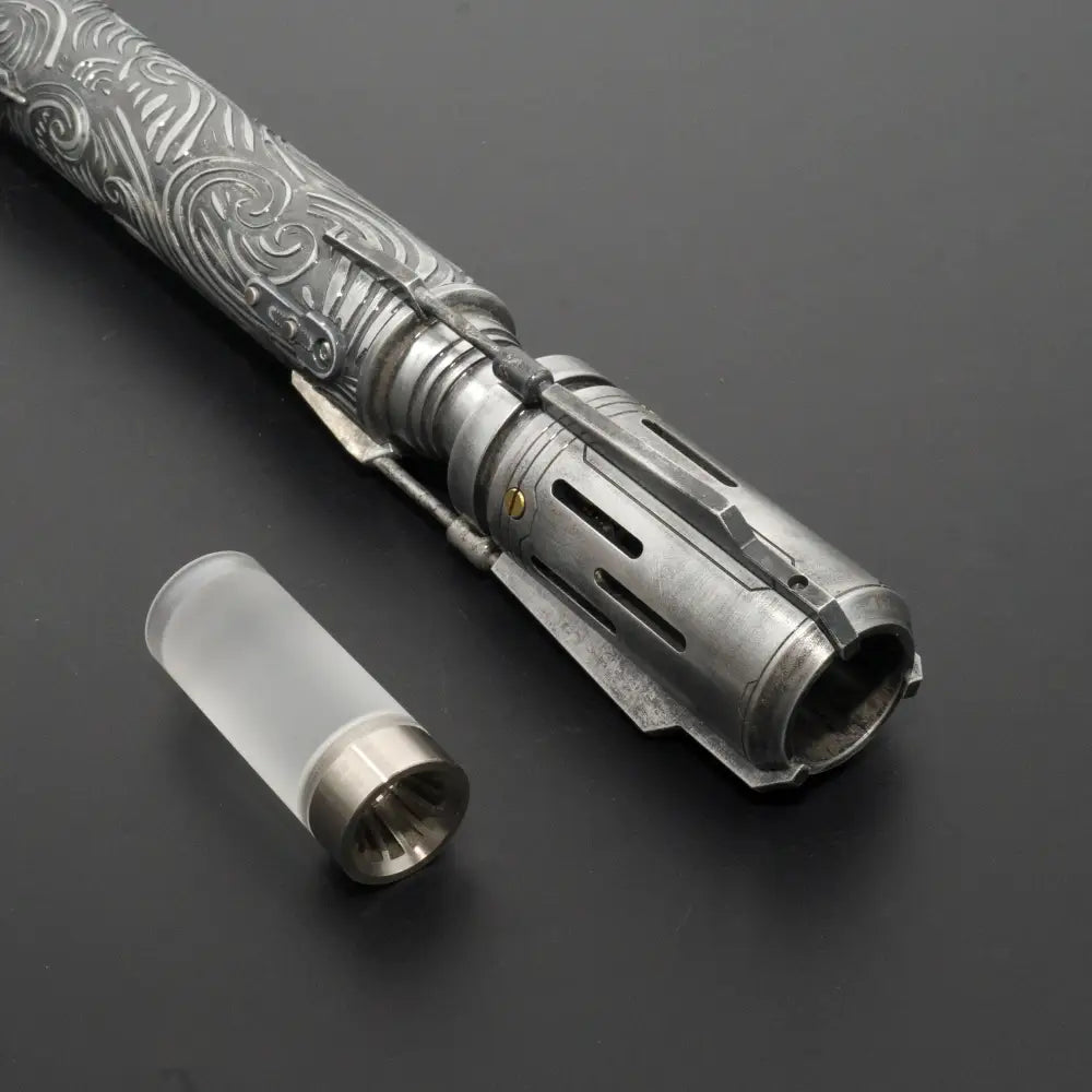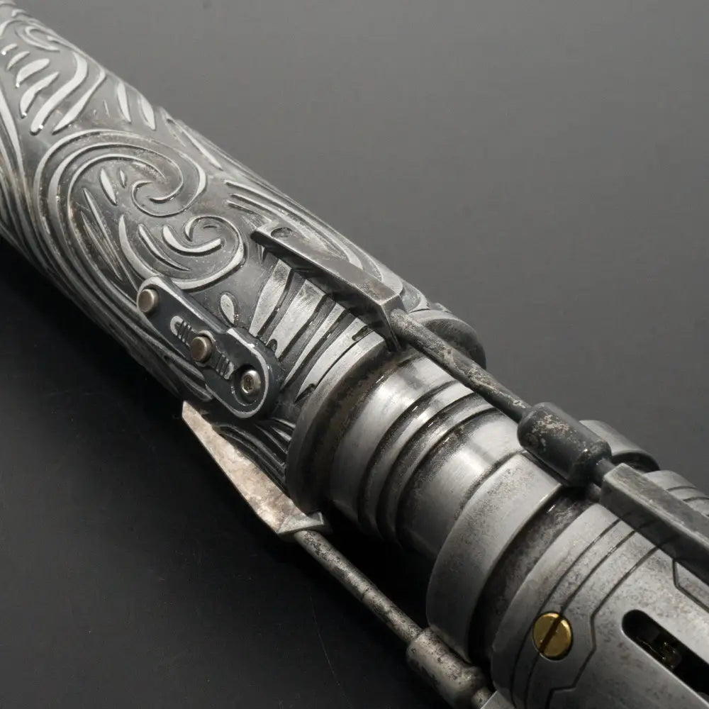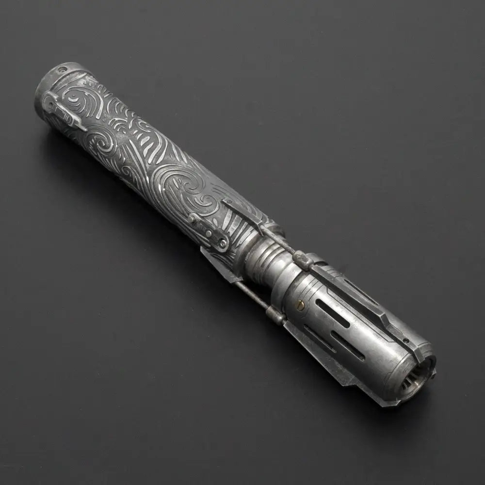 Discover Satele's Saber, a masterpiece that embodies the grandeur and strength of a legendary Master. With intricate details and engraved symbols, each element tells of his illustrious past. The blade shines with a powerful glow, a symbol of leadership and courage.
