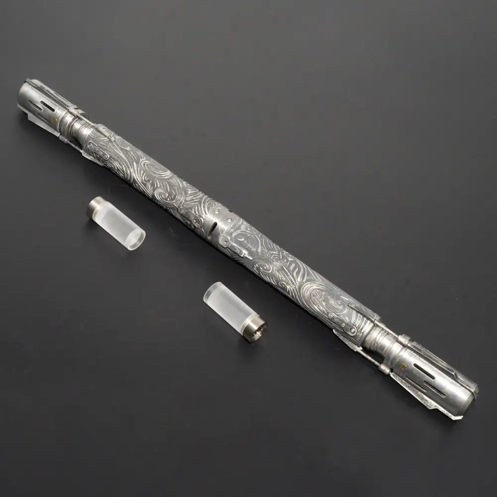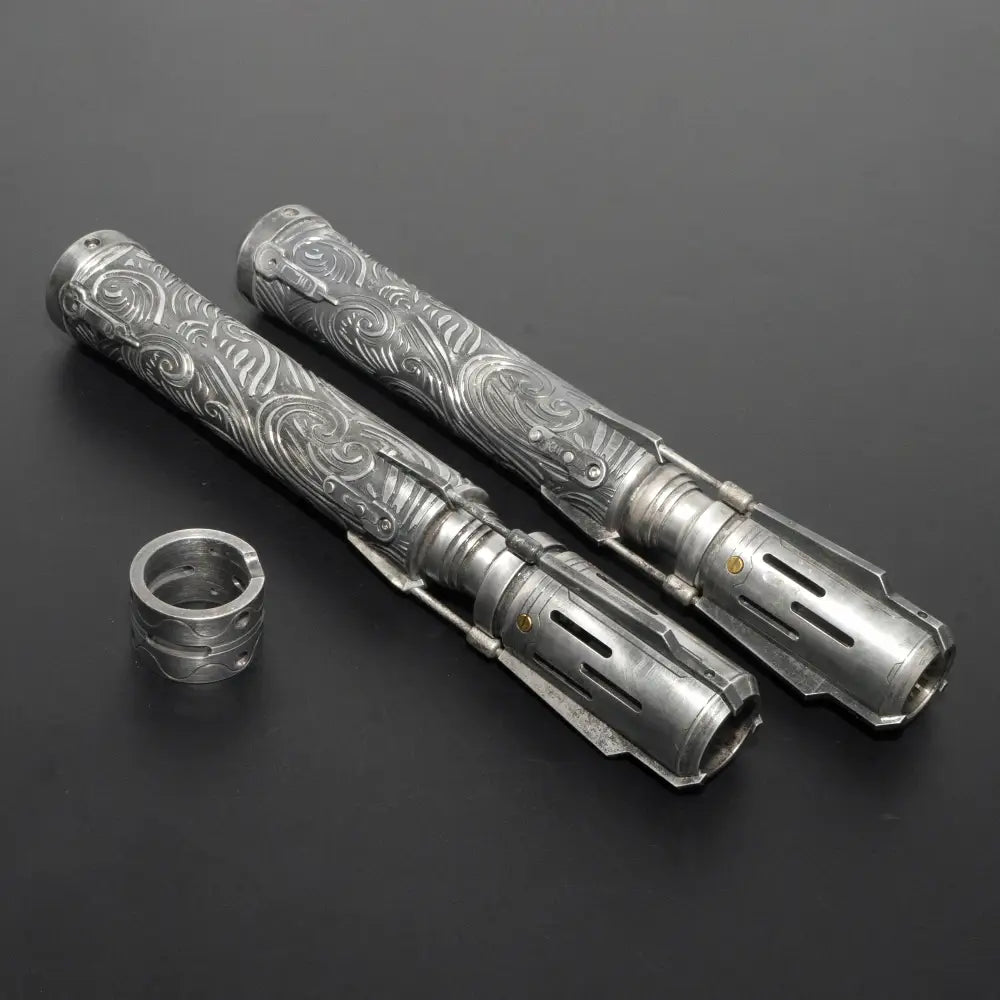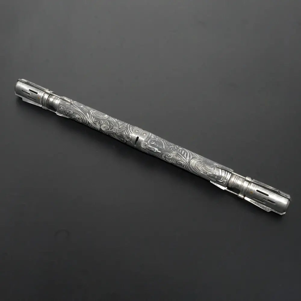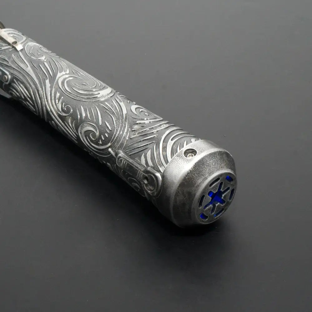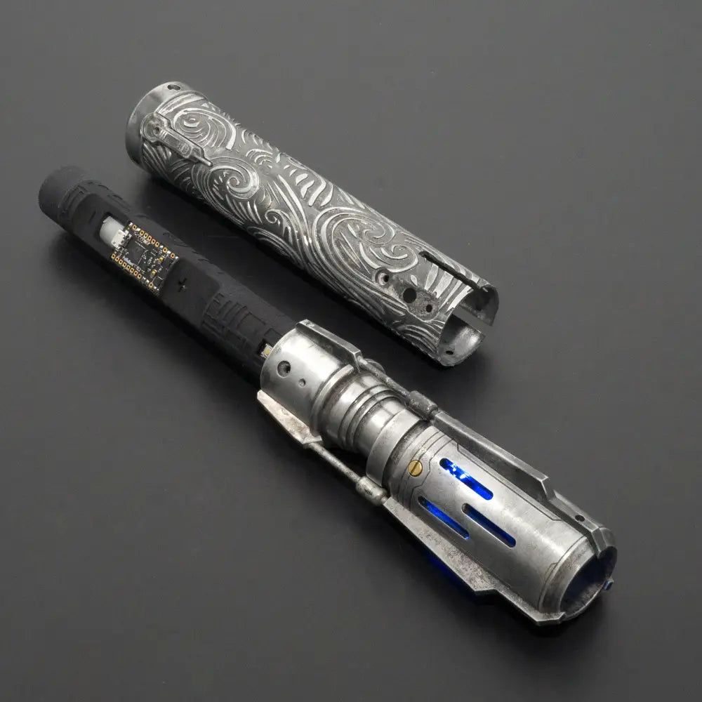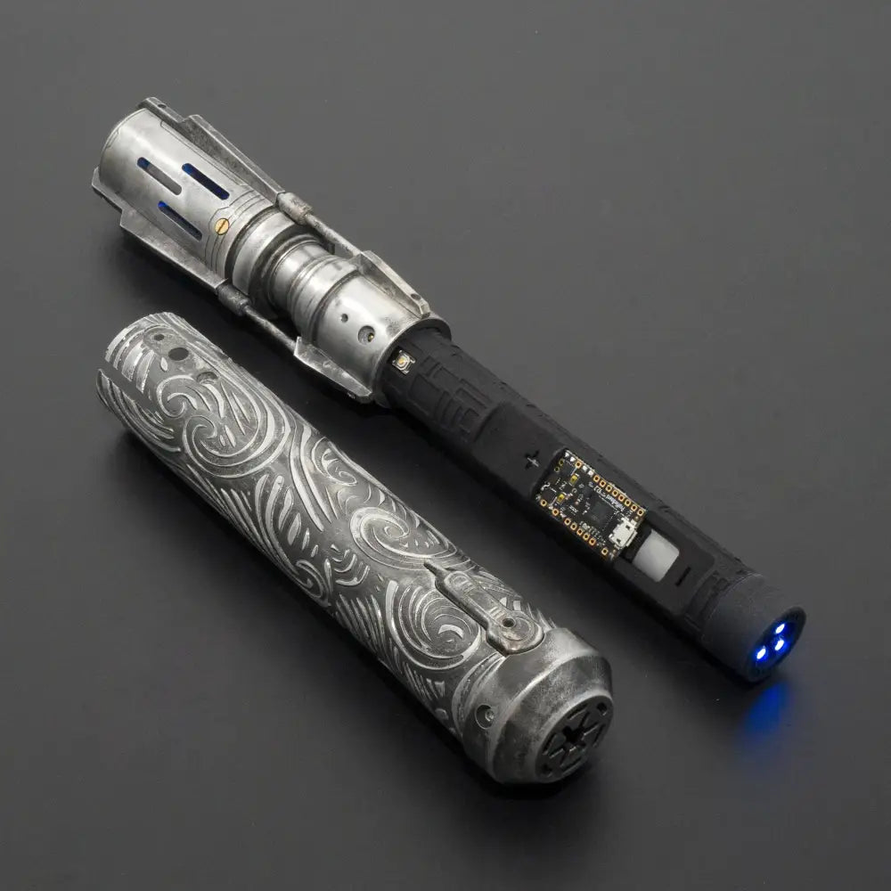 Discover Satele's Saber, a masterpiece that embodies the grandeur and strength of a legendary Master. With intricate details and engraved symbols, each element tells of his illustrious past. The blade shines with a powerful glow, a symbol of leadership and courage.