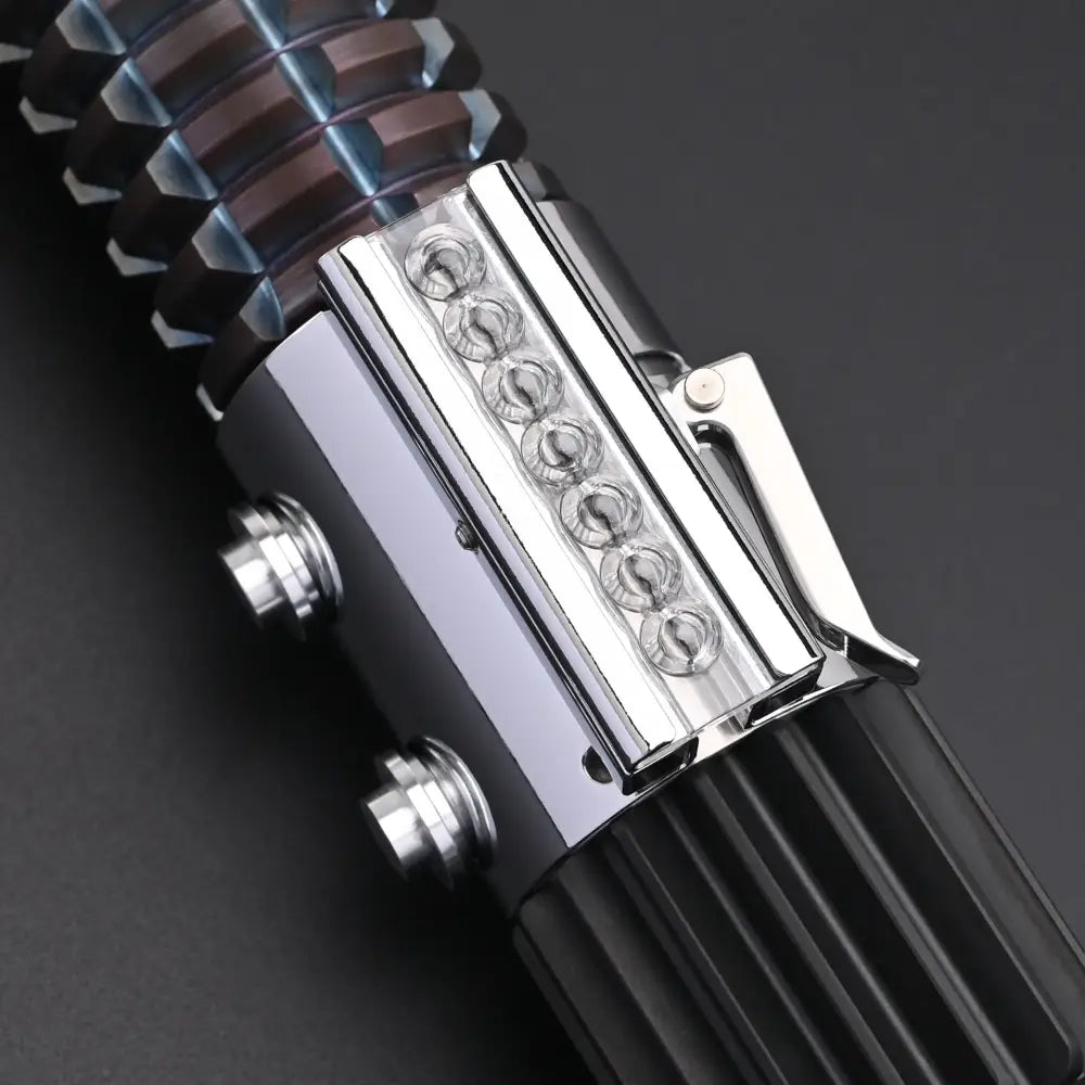 The ultimate saber. Removable blade. Over 250 LEDs in the blade itself. Allowing for the most realistic saber experience ever. Infinite colors (All lightsaber colors included). Gesture controllable. (Turning on/off). Smooth swing 5 Different ignitions + the ability to customize ignitions. 21 Different sound fonts + the ability to customize sound fonts. Sound effects: Ignition, Motion, Deflecting, Clash, Blaster BlockFlash on clash.