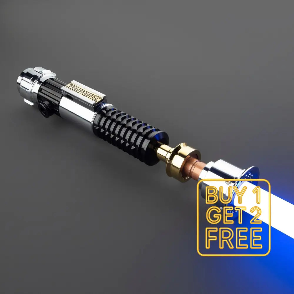 The ultimate saber. Removable blade. Over 250 LEDs in the blade itself. Allowing for the most realistic saber experience ever. Infinite colors (All lightsaber colors included). Gesture controllable. (Turning on/off). Smooth swing 5 Different ignitions + the ability to customize ignitions. 21 Different sound fonts + the ability to customize sound fonts. Sound effects: Ignition, Motion, Deflecting, Clash, Blaster BlockFlash on clash.